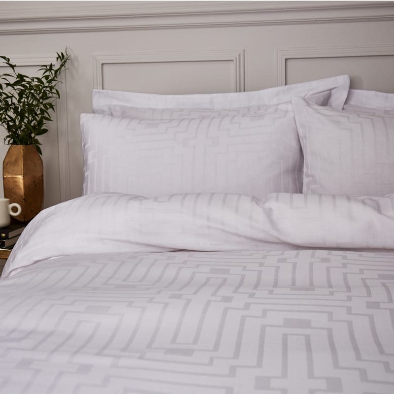 Bianca Satin Geo Jacquard White Duvet Set Single