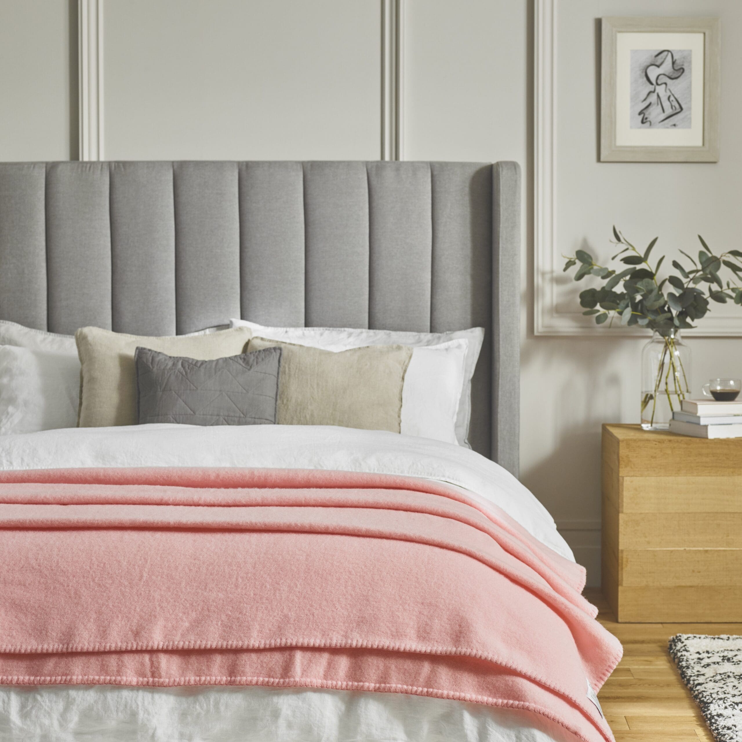 The traditional Harlequin Blanket is woven from 100% pure new wool to produce a blanket with high durability and warmth. Pure new wool has superior insulating properties, making the Harlequin a practical choice to lock in heat on a chilly evening; perfect as an extra layer on the bed or to curl up under on the sofa. The Harlequin is available in a range of classic shades and whipped by hand in a choice of colour coordinated stitching, for a modern finish.