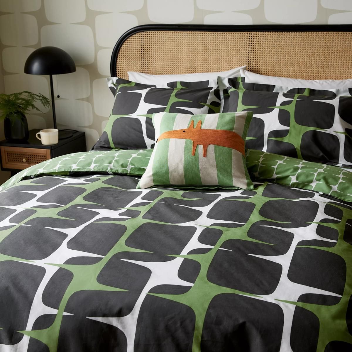 The Going Lohko Duvet Set from Scion is a retro arrangement of blocks, piled up to create a fun architectural feel. Newly coloured in juniper & liquorice, with a small scale Lohko design on the reverse.